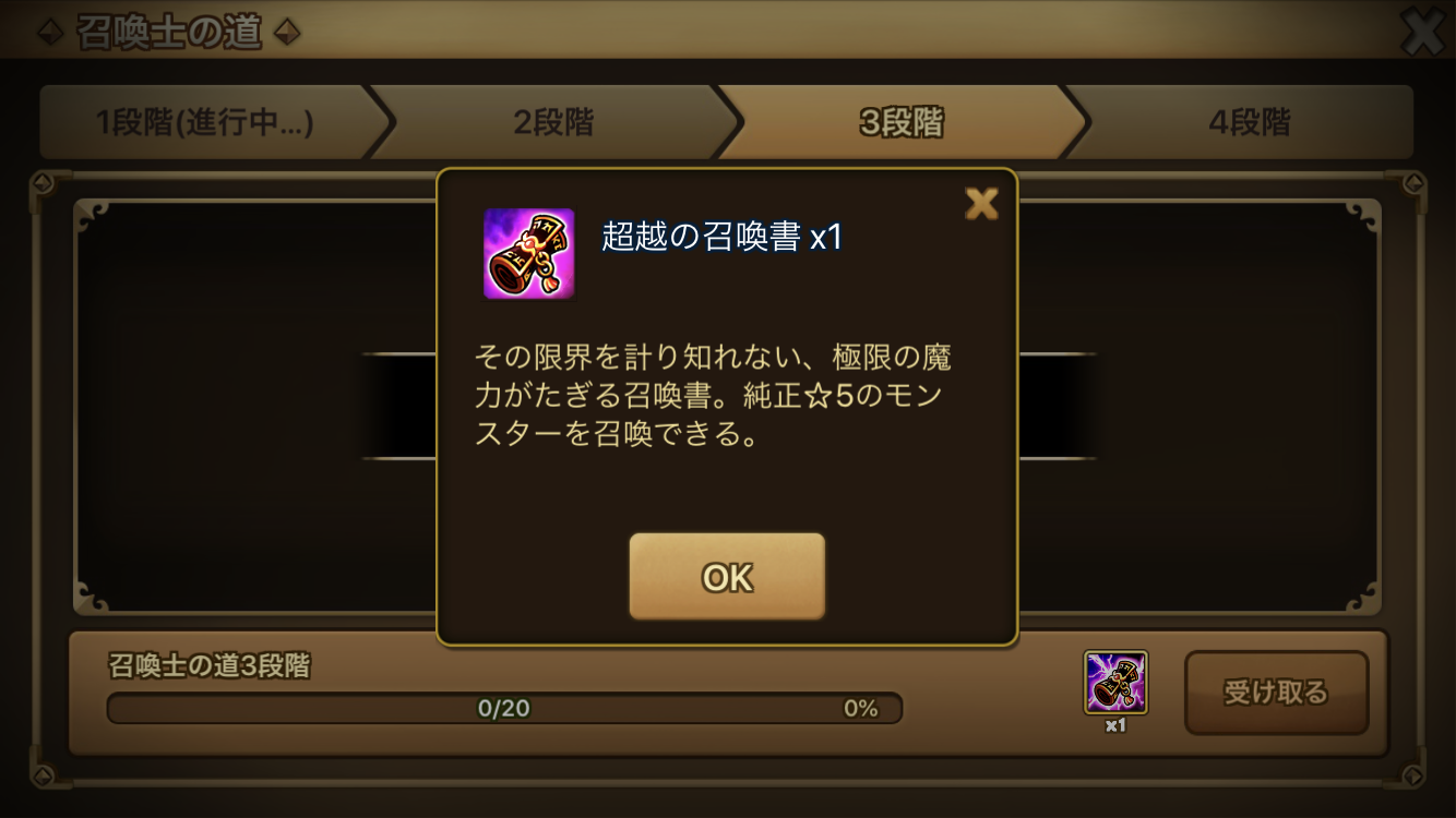 それの「3段階」をクリアするとなんと!!!【超越の召喚書】が入手できるようになりました!!!