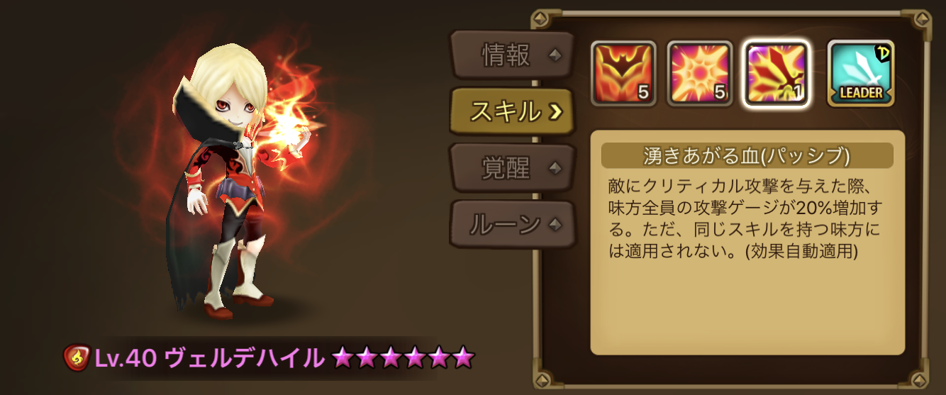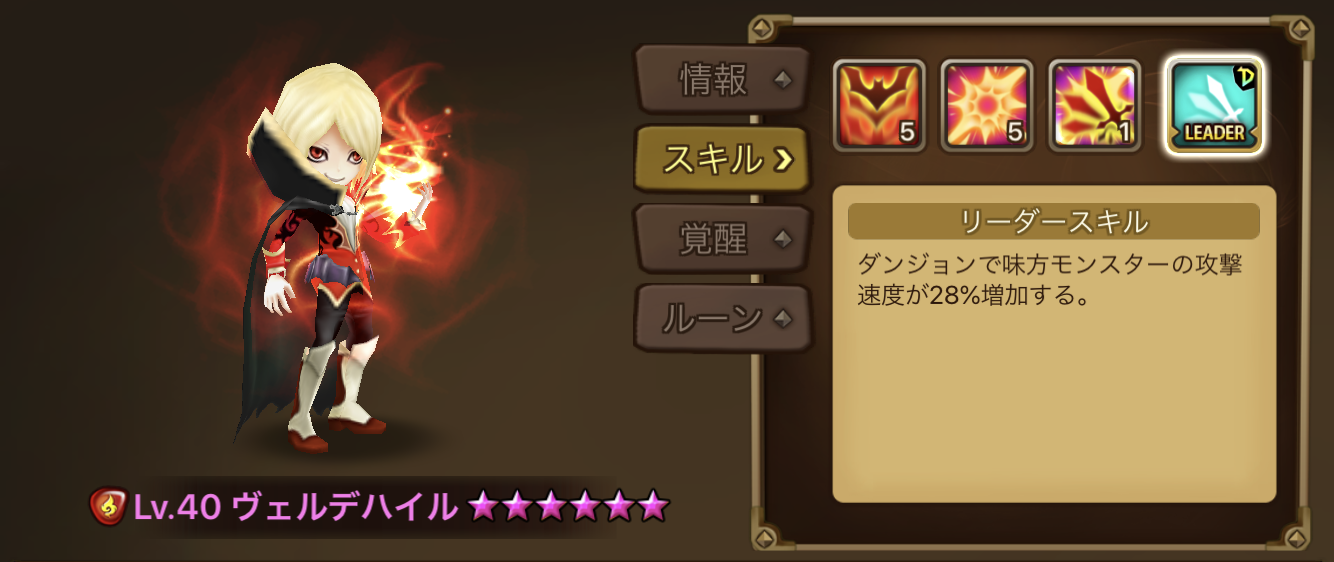 ○ヴェルデハイル(火ヴァンパイア)のリーダースキルとパッシブスキルで回転率を良くする。