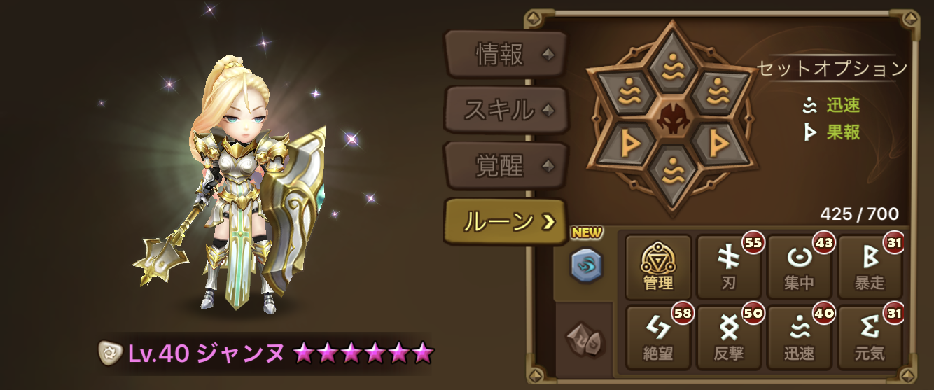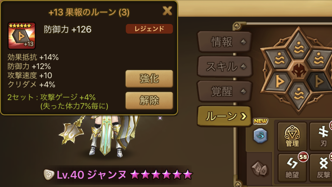 果報ルーンは「失った体力7%毎に、攻撃ゲージ+4%」ですね。