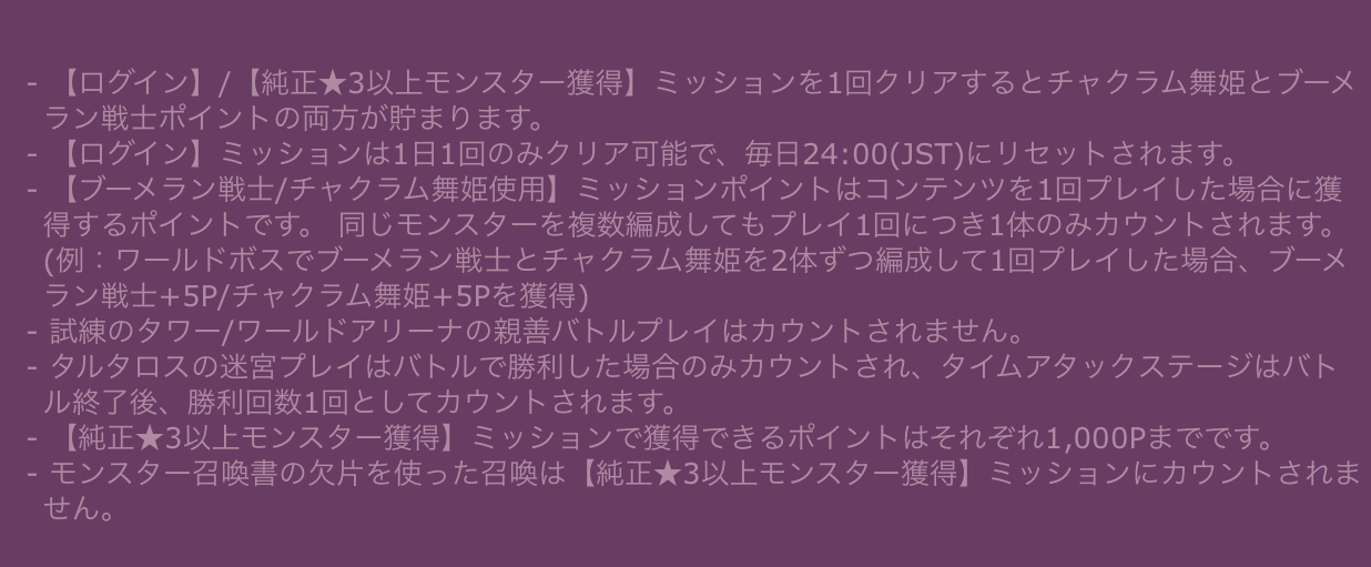 ・ミッションは1日1回のみクリア可能。24時リセット。