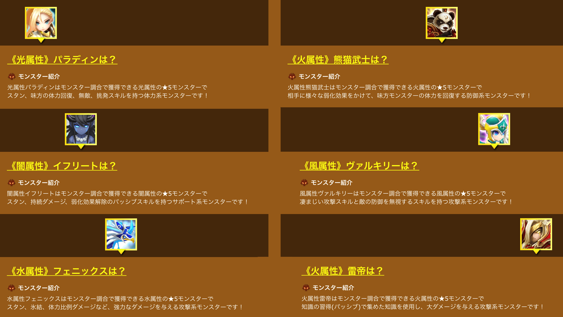 イベントページには各モンスターについて、