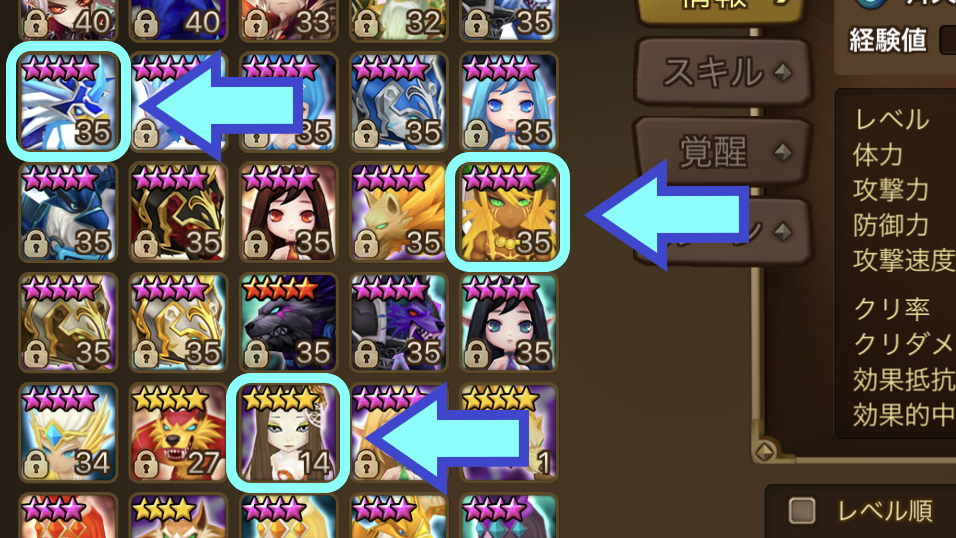 ○★5にせず、★4不完のモンスターのままスキル上げに使う