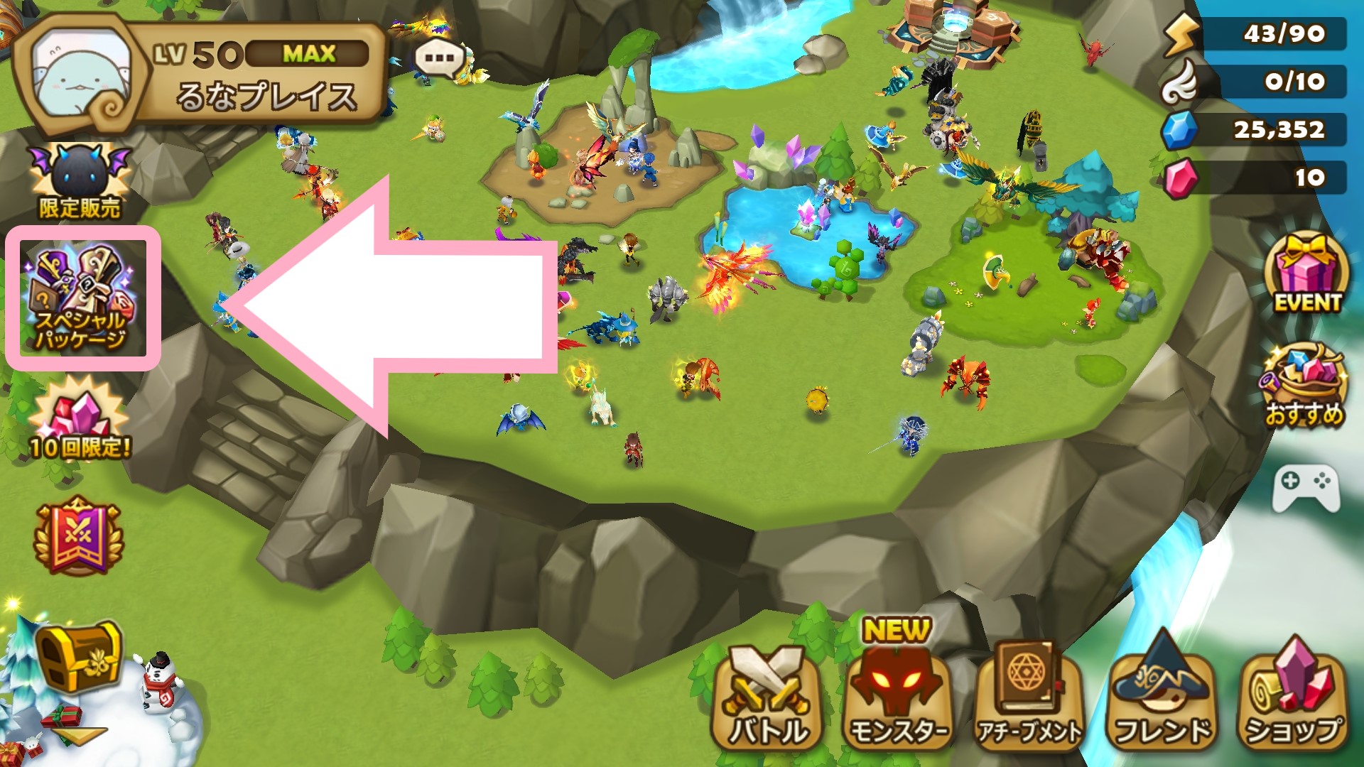 庭画面左の「スペシャルパッケージ」をタップするだけですw