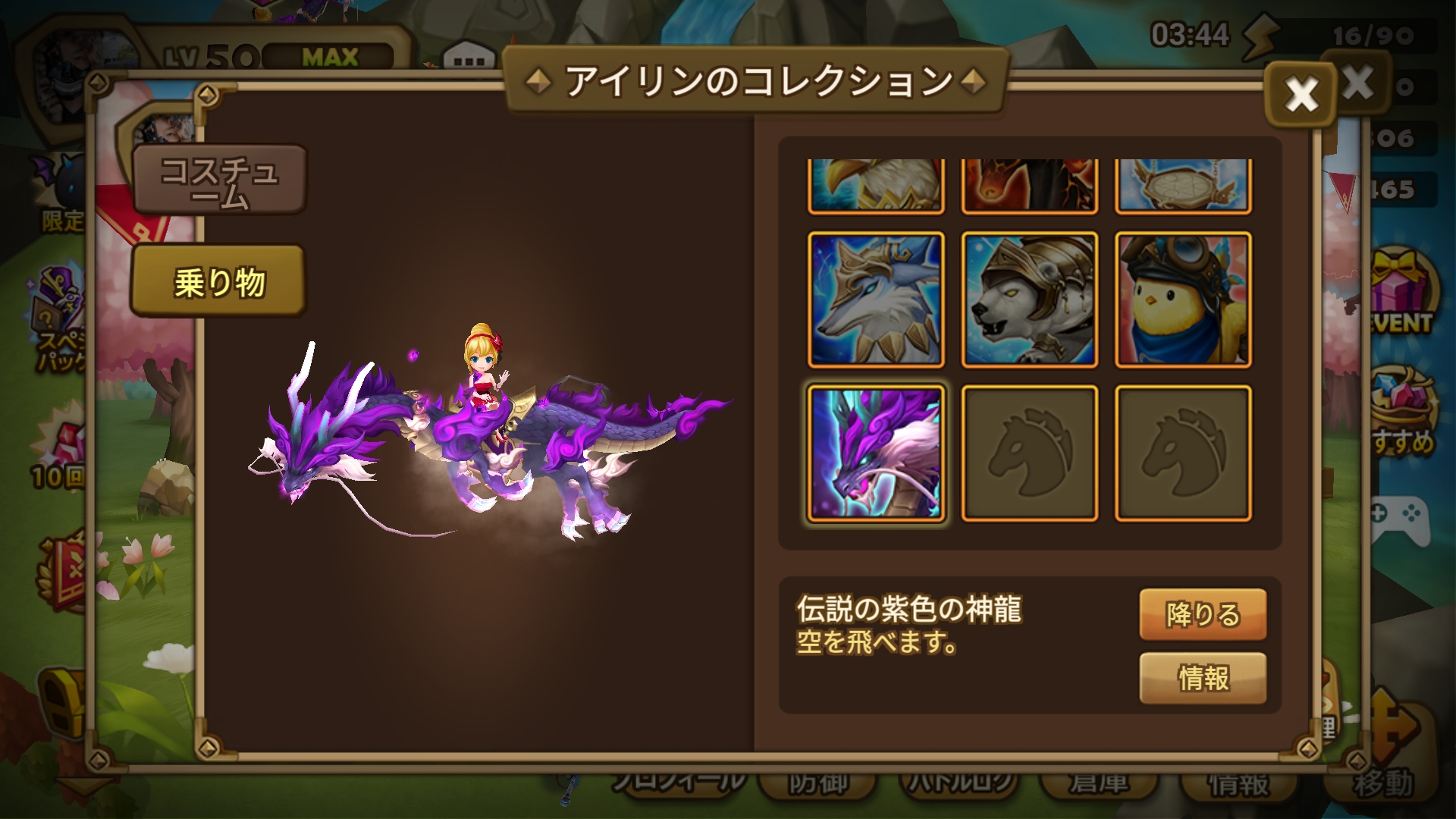 アイリンの乗り物「伝説の紫色の神龍」が受け取れるな!