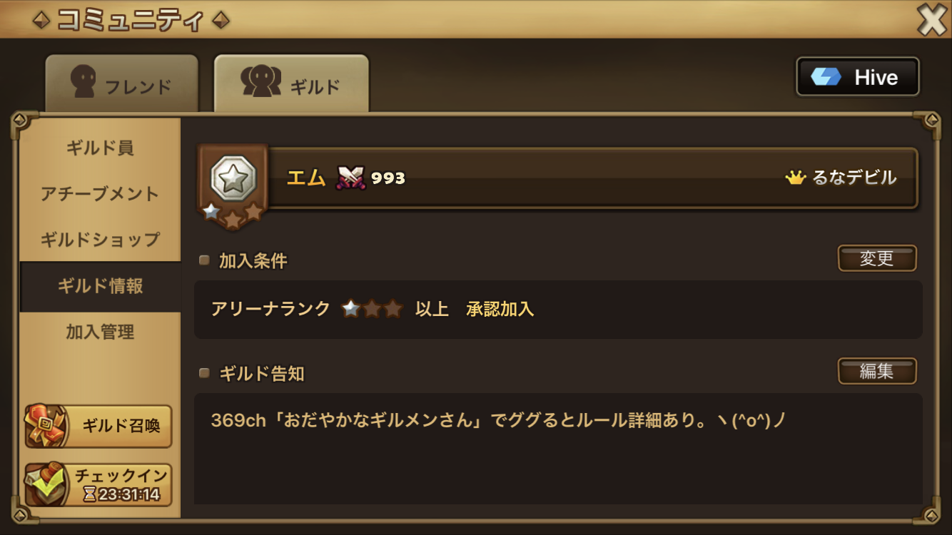 ギルドのほうで、アリーナランクで加入条件を制限することはできますよね。