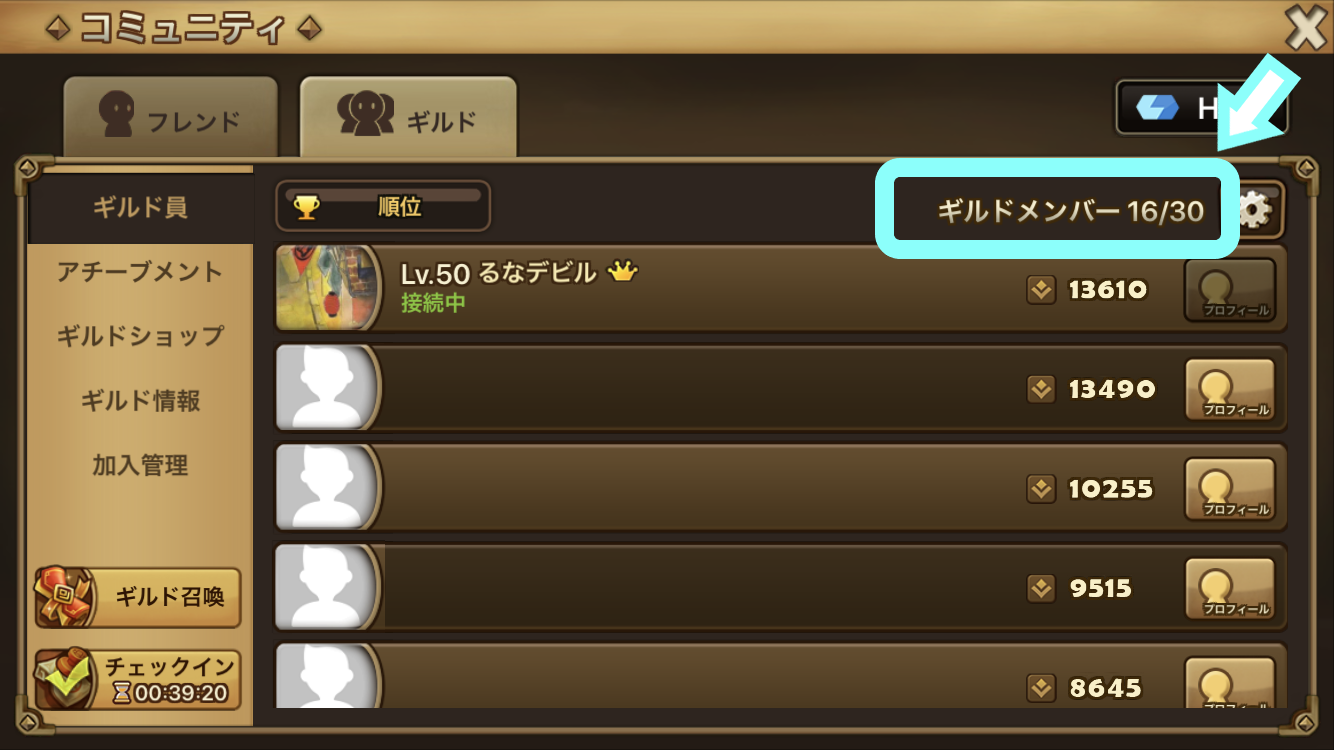 前日のチェックイン人数に応じて、ギルドチェックイン報酬は決まるんだね!