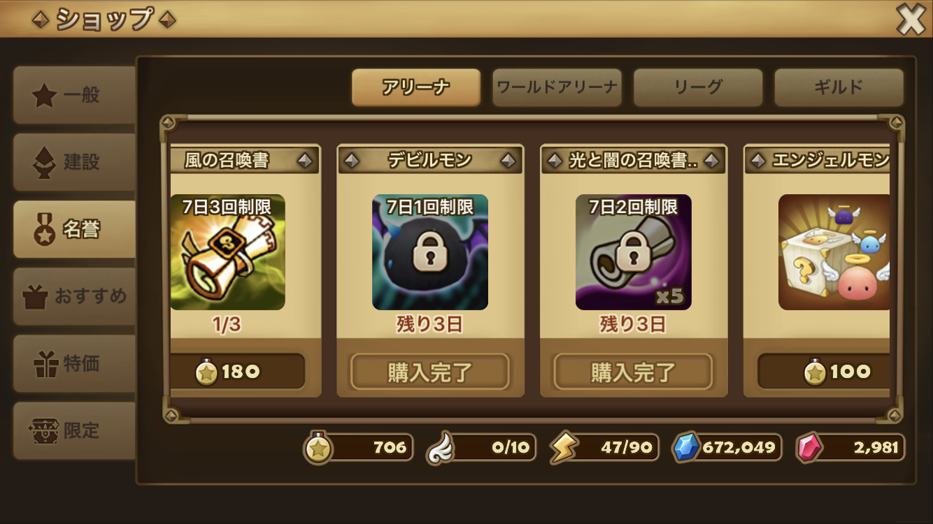 個人的に、名誉ポイントは「デビルモン」「光と闇の召喚書の欠片」と交換をするのが好きですw