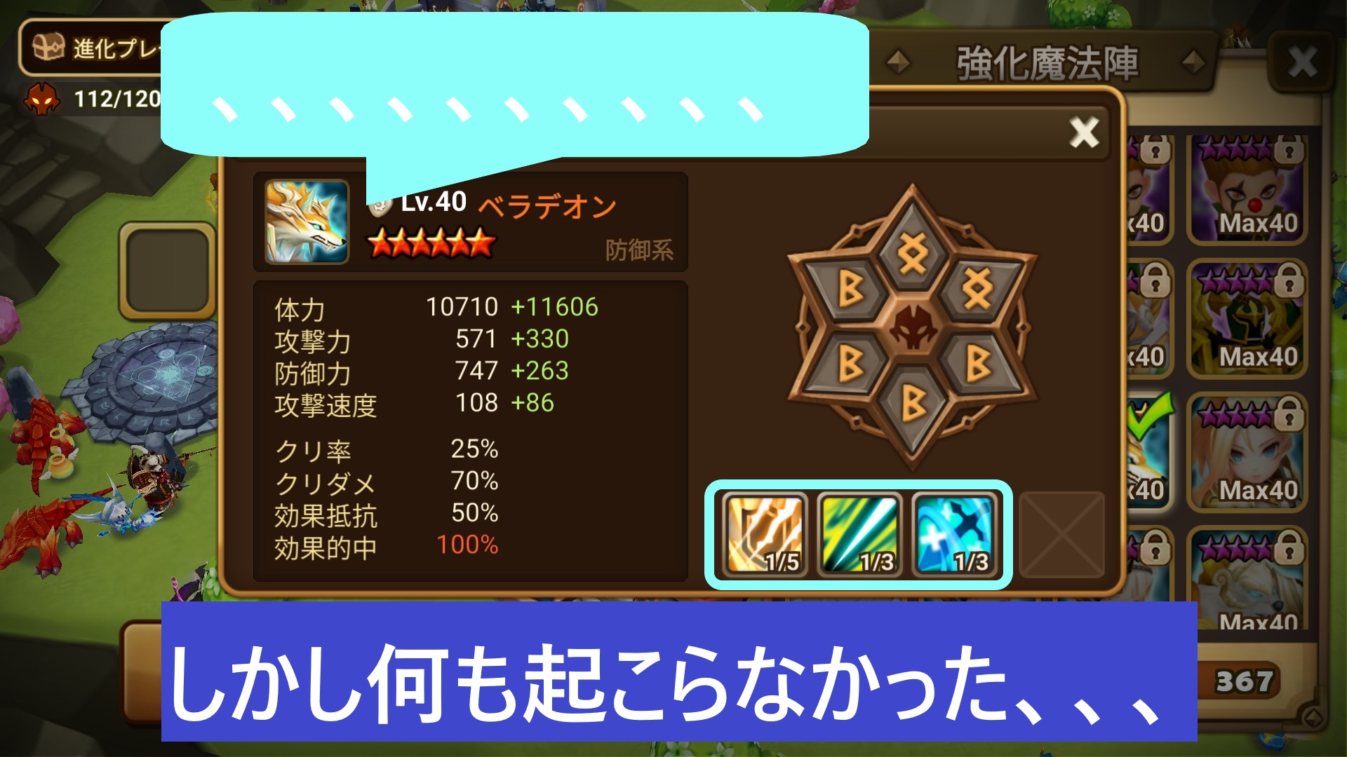 ベラデオン(覚醒なし)で2次覚醒ベラデオンのスキル上げ結果、、、