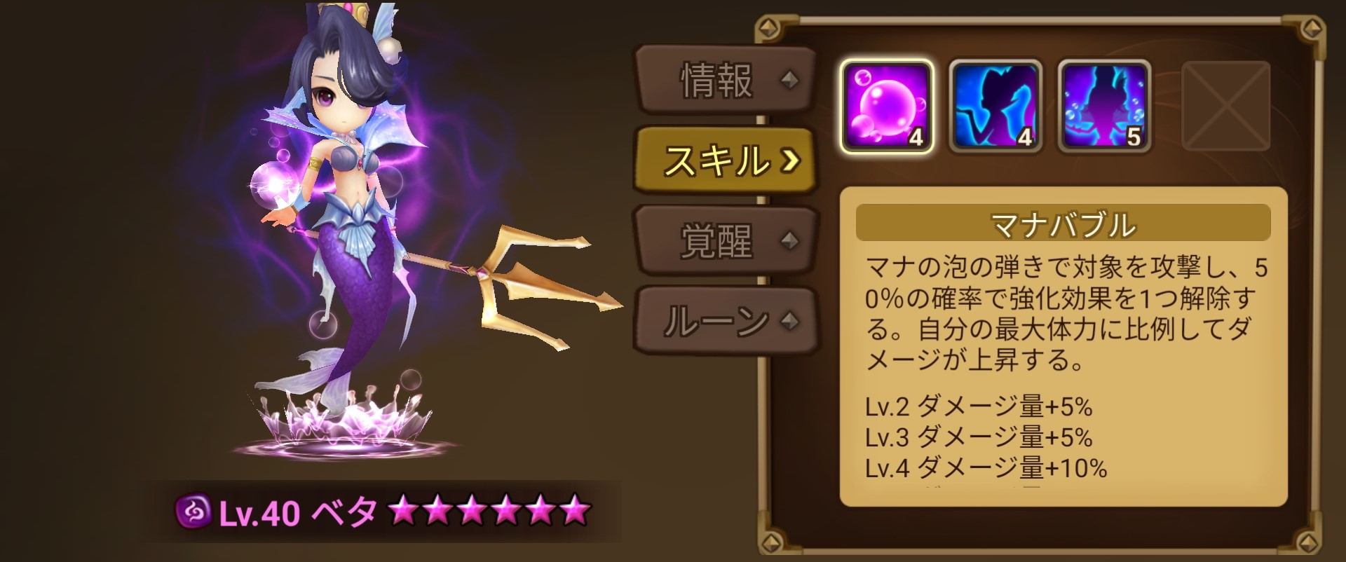 ベタ(闇マーメイド)スキル確認