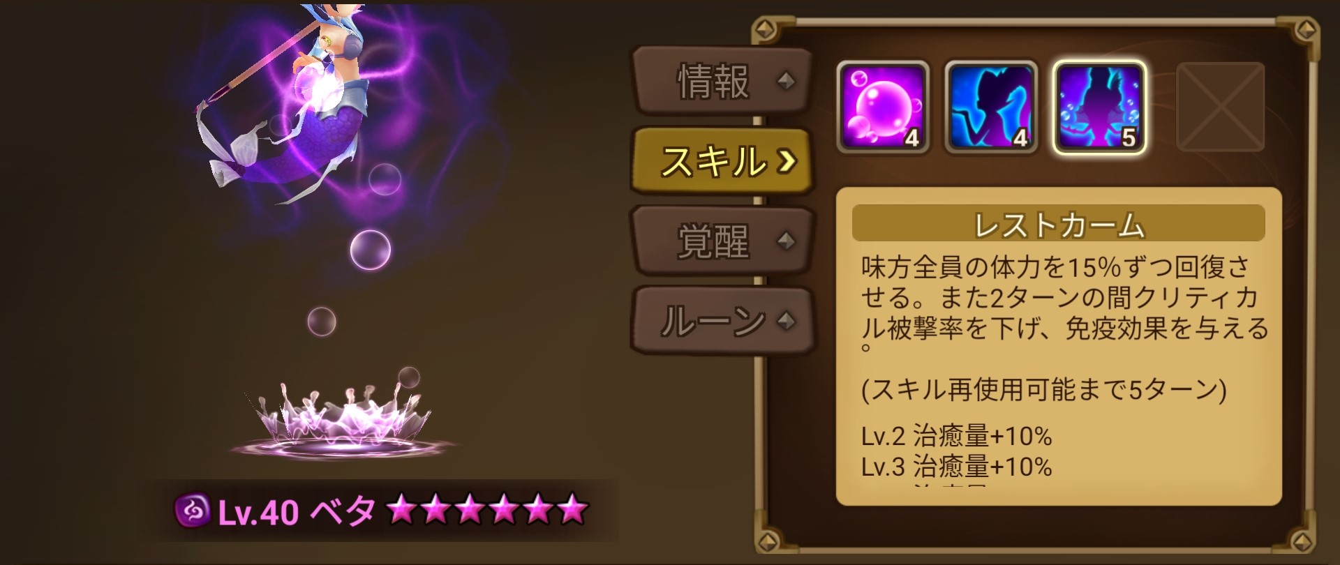 スキル3は「回復」「クリティカル被爆率ダウン」「免疫」だね☆
