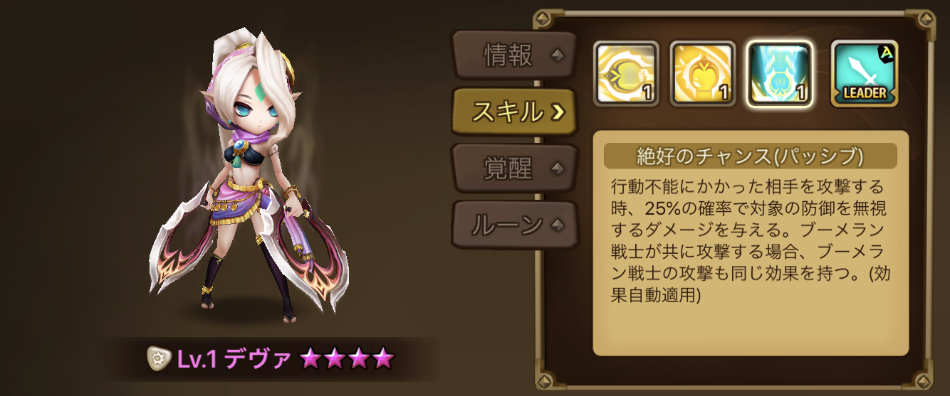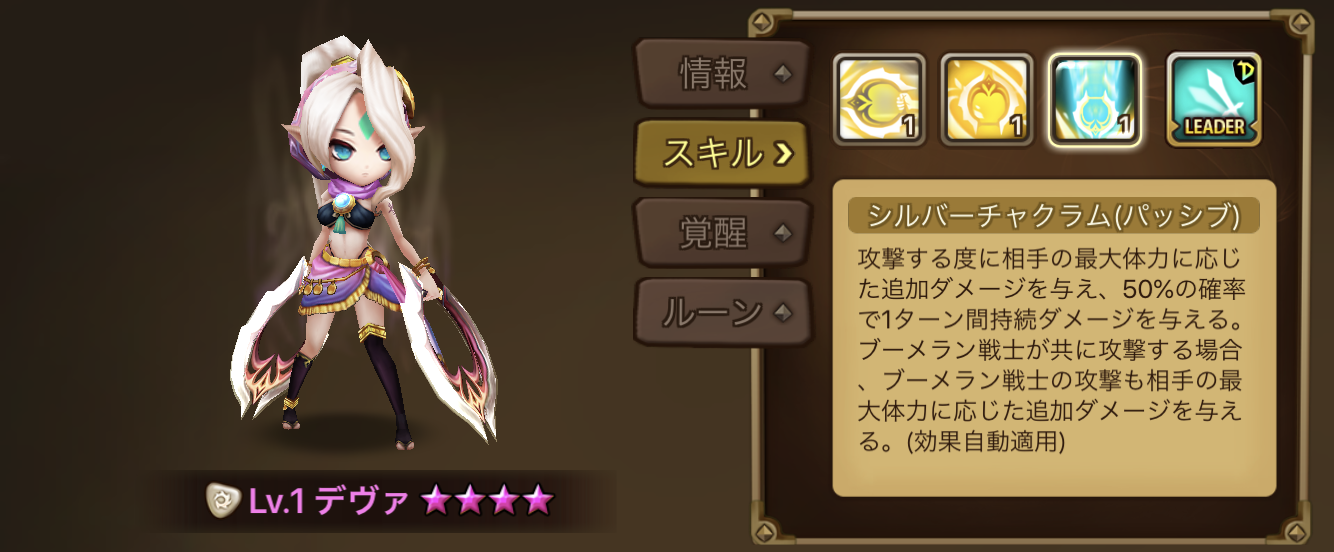 デヴァ(光属性チャクラム舞姫)は攻撃力アップが攻撃速度アップになってるな☆