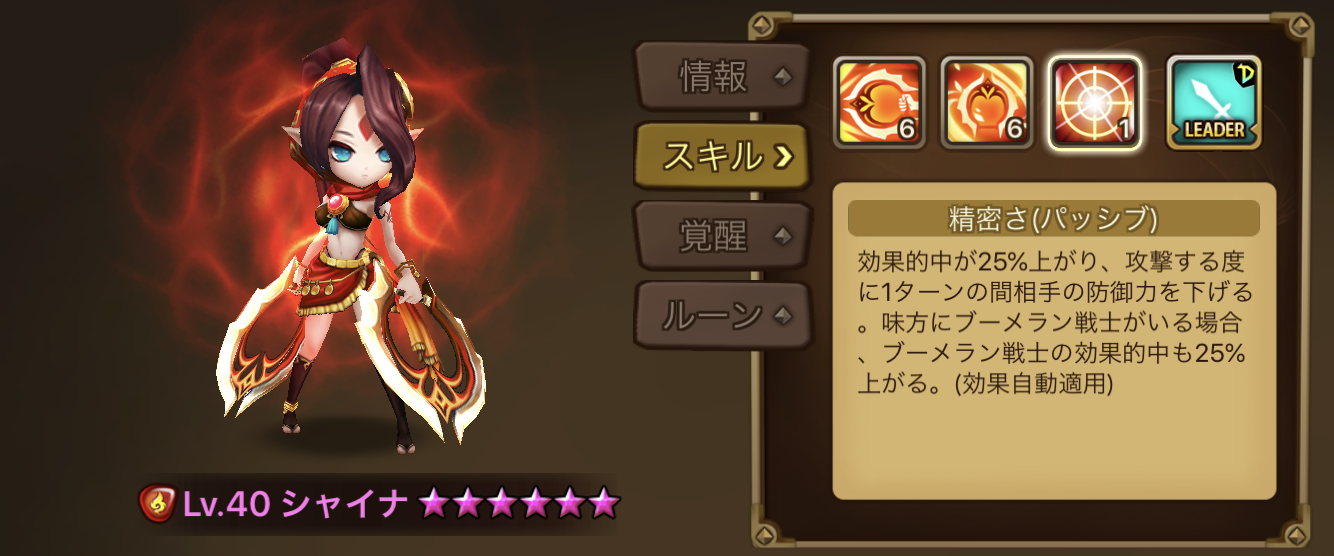 シャイナ(火属性チャクラム舞姫)は攻撃速度アップが攻撃力アップに、