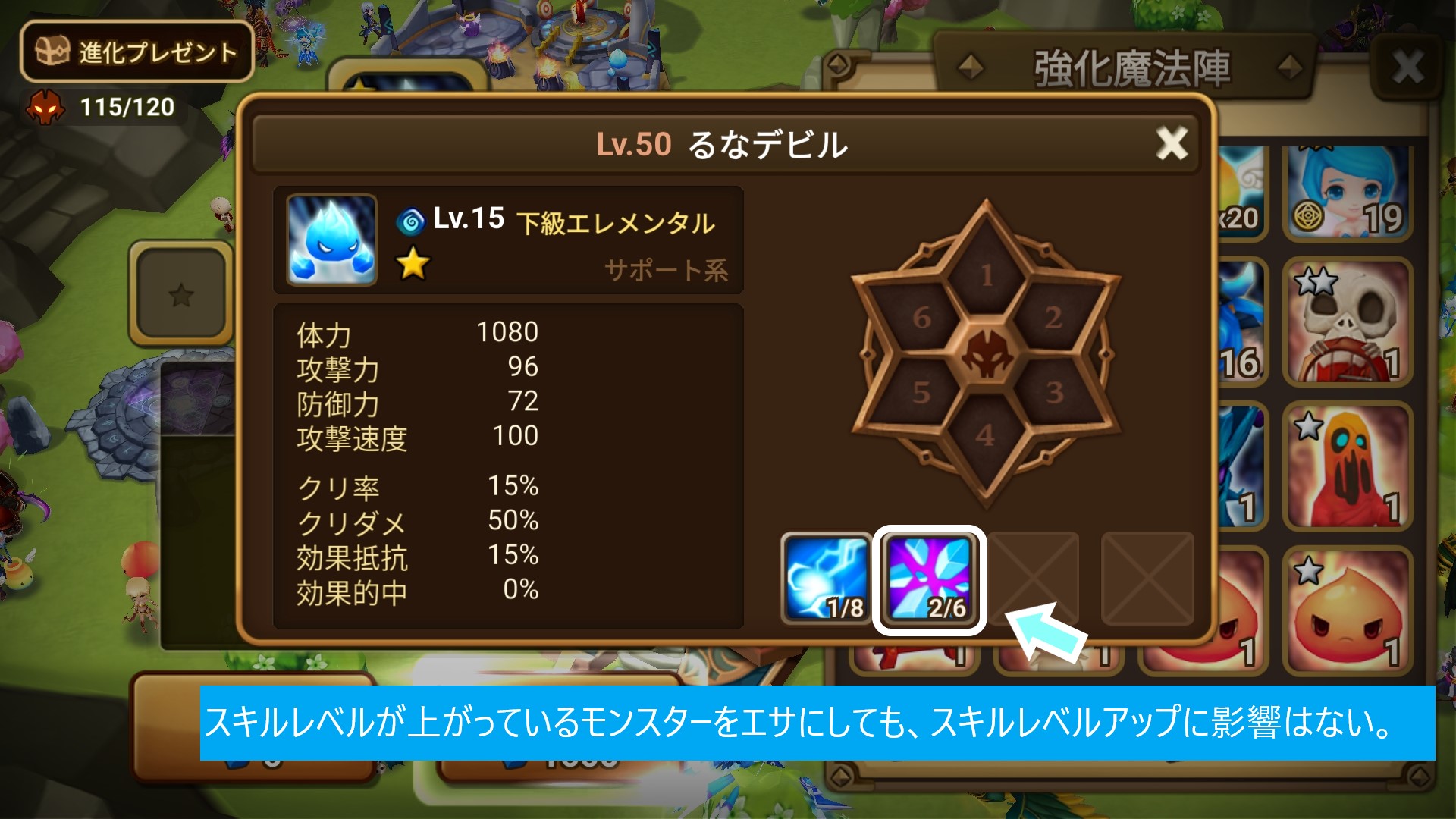 素材のスキルを上げとくと強化されたモンスターもスキル上がる?