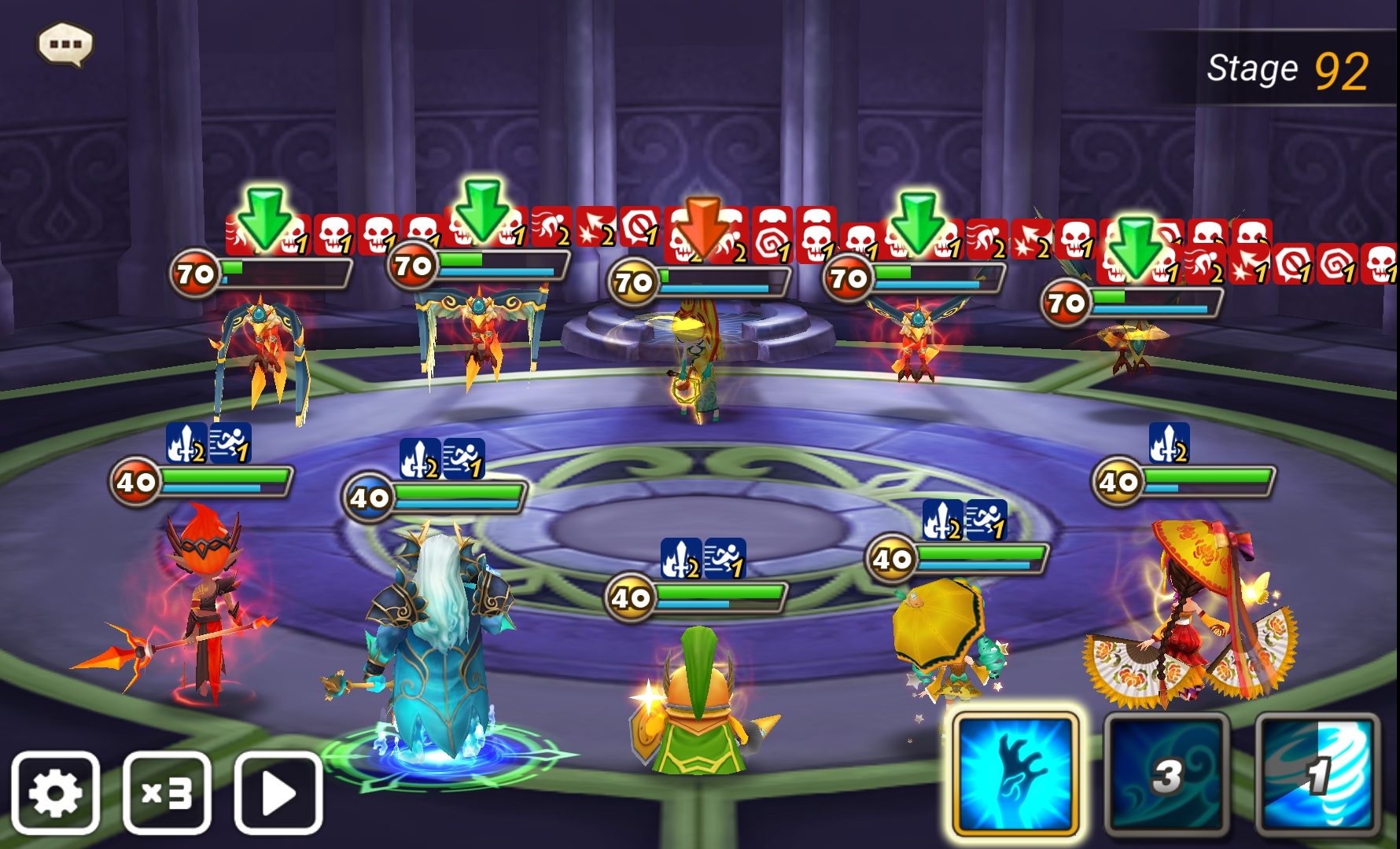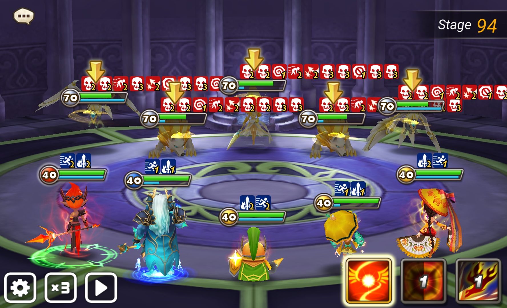 かなり単純にクムヌ(火アヌビス)やリナ(水エピキオン司祭)を育てて防御や回復を手厚くしていけば行けるんじゃないかと思っていましたが、なかなか育つのに時間がかかっており、